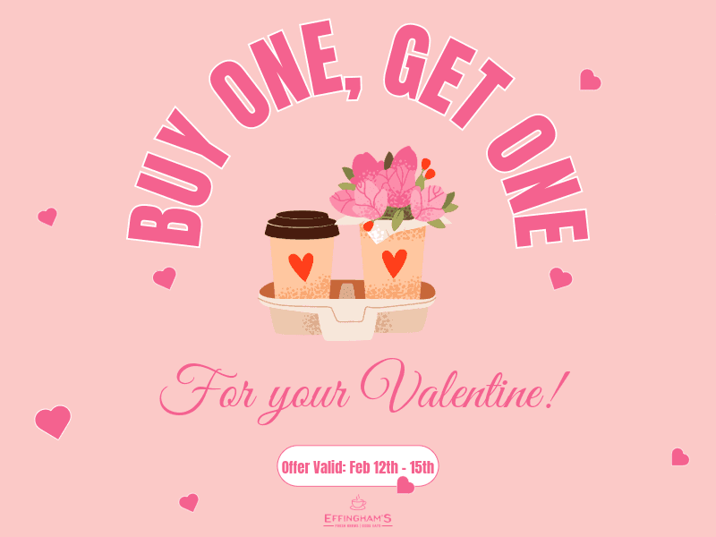 Celebrate Valentine’s with Effingham’s First Call. For a limited time, enjoy our Buy One, Get One for Your Love coffee special—because the best moments (and the best coffee) are meant to be shared.